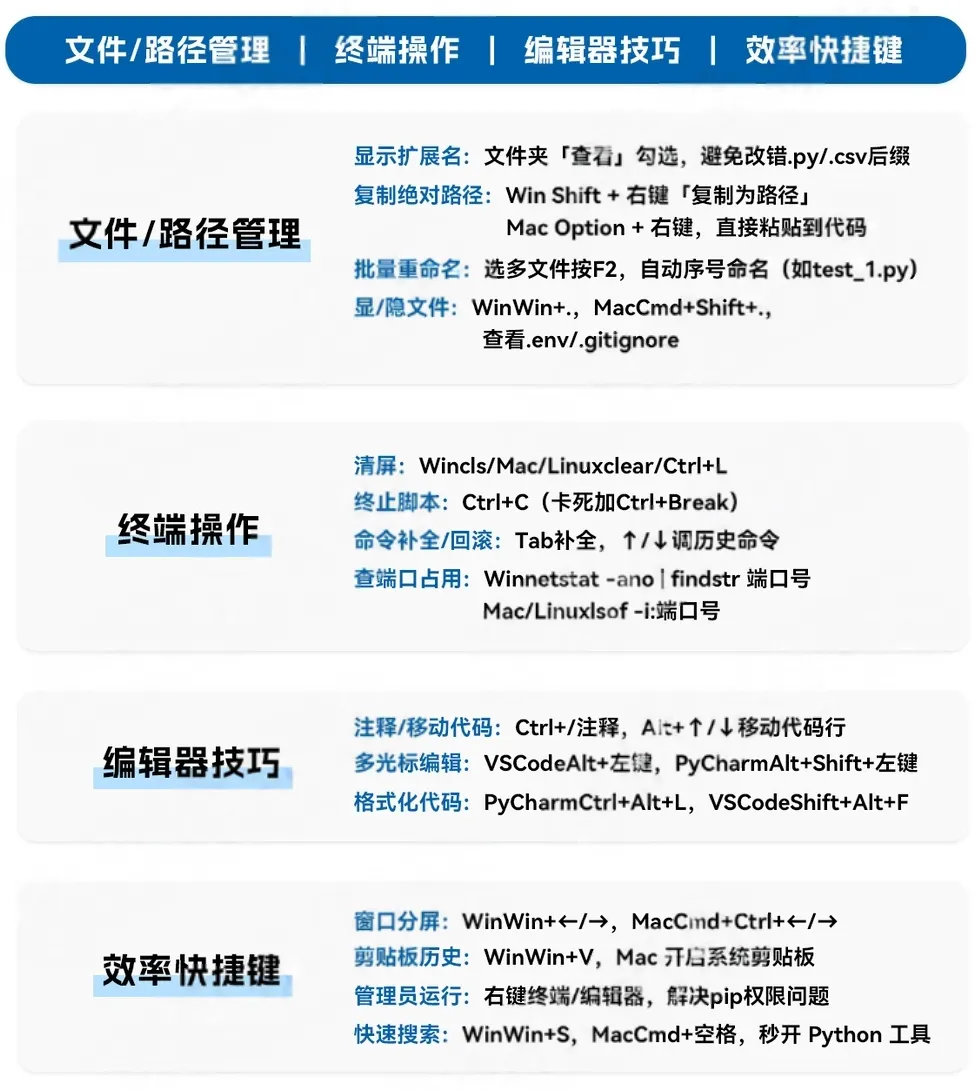 写Python总卡壳?这些电脑操作直接救效率!复制代码路径、一键清终端、多光标改代码…