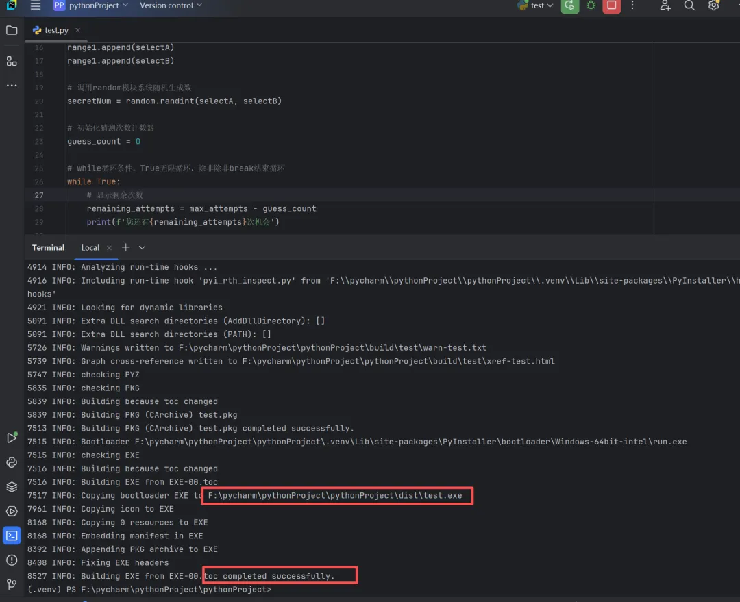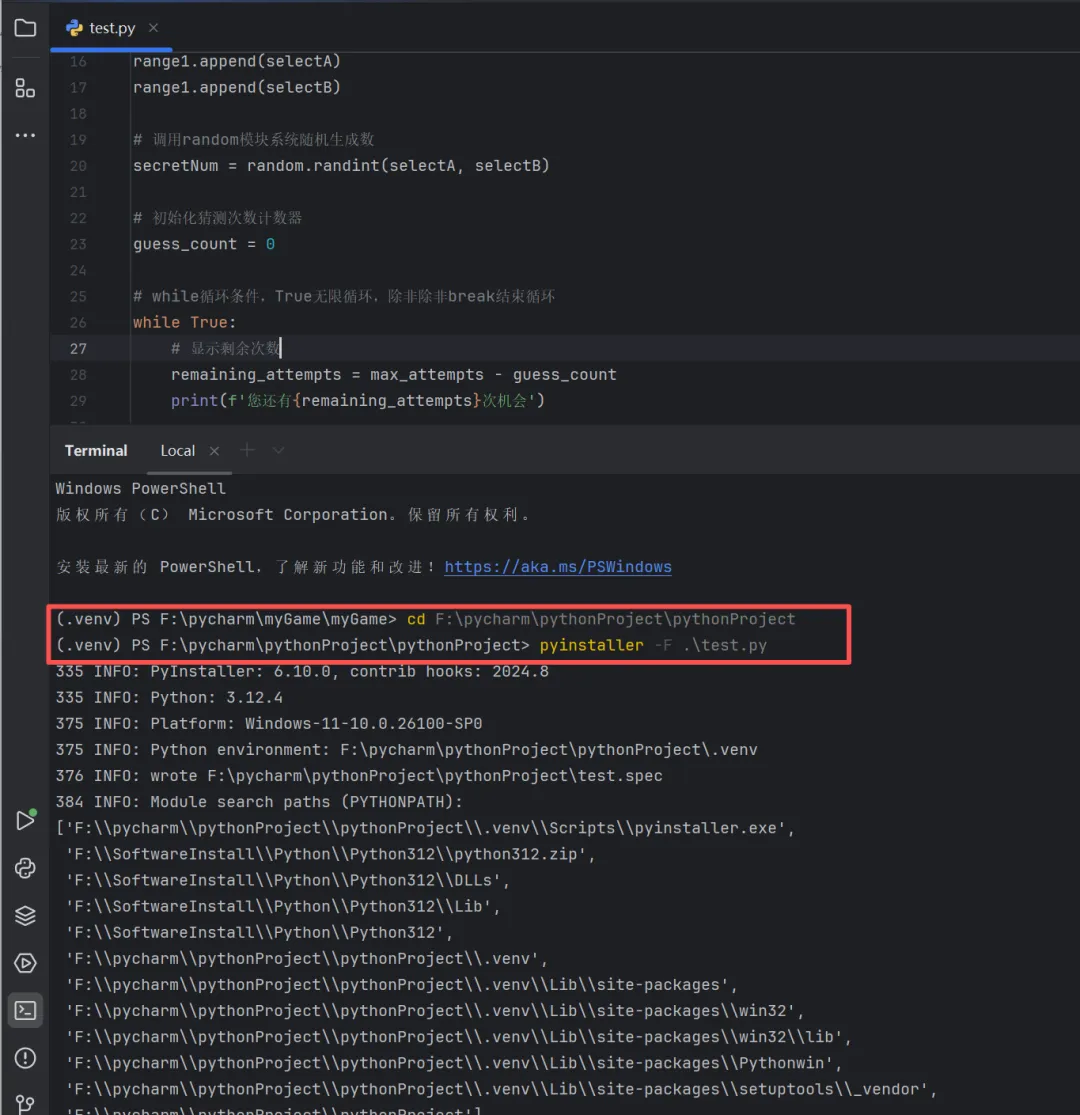 # 部分功能代码# 设置最大猜测次数max_attempts = int(input('请输入最大允许猜测次数:'))# 初始化猜测次数计数器guess_count = 0# 检查是否达到最大猜测次数 if guess_count >= max_attempts: print(f'很遗憾,您已经用了{max_attempts}次机会,还是没有猜中。') print(f'正确的数字是{secretNum}。游戏结束。') input('按回车键退出程序') break# 循环最后次数减1 guess_count -= 1