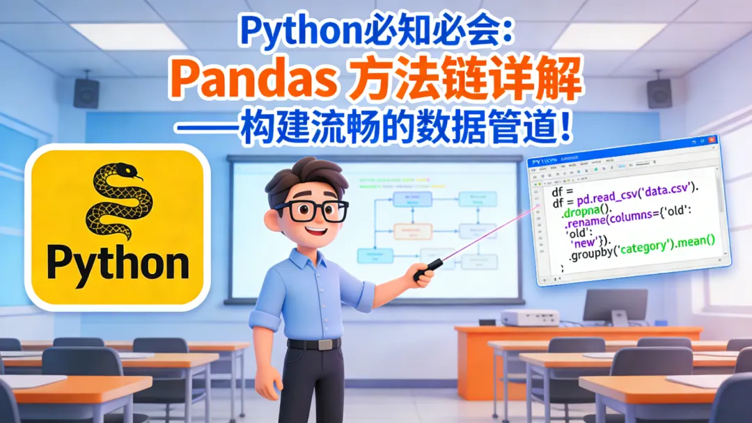 链式调用通过一条清晰易读的管道,将杂乱无章、不一致的数据转化为可供分析的表格。更重要的是,它背后蕴含着一种思维模式:如果一个方法返回的是 DataFrame,那么它就可以沿着链式调用继续执行;如果它就地修改数据或返回其他类型,那么它就应该放在链的末尾——或者完全退出链式调用。 掌握了这一原则,你就可以构建流畅可靠的 pandas 工作流,让它们读起来和写起来一样自然。