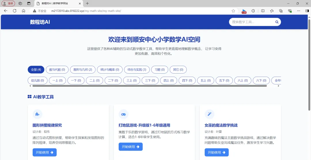 在 Trae 插件市场搜索安装一个叫 "Live Server" 的插件(或者直接双击文件夹里的 index.html 用浏览器打开)。你会看到一个漂亮的网页已经出来了!试着在搜索框搜一下“骰子”,看看卡片会不会自动过滤。登录 Netlify 账号:打开浏览器,访问 Netlify 官网。使用你注册的账号登录。进入“站点”页面:登录后,你通常会直接进入你的仪表盘(Dashboard)。在左侧导航栏或者顶部菜单中,找到并点击 "Sites"(站点)这个选项。如果你是第一次使用,这个页面可能会是空的,或者像你图片左侧那样,提示你“部署你的第一个项目”。找到“拖拽上传”区域:在 "Sites" 页面,你会看到一个明显的区域,通常会写着类似 "Drag and drop your site folder here"(把你的站点文件夹拖到这里)。拖拽你的项目文件夹:打开你的电脑文件管理器(Windows 上的“文件资源管理器”或 macOS 上的 Finder)。找到你之前创建的整个项目文件夹,比如叫 my-math-site。重要:确保你拖拽的是整个文件夹,而不是只拖拽里面的 index.html 文件。Netlify 需要整个文件夹来正确部署你的网站,包括所有的 HTML 动画文件和可能的图片等资源。用鼠标左键按住这个 my-math-site 文件夹,然后把它拖拽到 Netlify 网页上刚才找到的那个 “拖拽上传”区域。松开鼠标后,Netlify 会自动开始上传你的文件并部署你的网站。你会看到一个进度条或者状态信息,显示你的网站正在部署中。部署成功后,Netlify 会自动为你生成一个唯一的网址(URL)。这个网址通常会显示在你的站点详情页顶部,比如 https://your-site-name-xxxx.netlify.app。点击这个链接,你就可以在浏览器中看到你刚刚搭建的数学教学网站了,上面是我成功制作出来的,但国内网络不友好!(若不满意上面同样的步骤,自己在域名上挂下,基本和上面一样,下面是我挂的http://m2172010.abc.818222.xyz/my-math-site/my-math-site)这就是 Trae 最强大的地方。当你又做了一个新的 triangle.html(三角形内角和):打开 Trae,对它说:“我加了一个新课件 triangle.html,标题叫‘三角形内角和’,描述是‘拖动顶点观察角度变化’,帮我更新一下首页。”Trae 改完后,你再次把文件夹拖进 Netlify 覆盖一下即可。从前,我们是知识的传递者;现在,我们是数字教育的创造者。AI 时代,技术不再是门槛,想象力才是。只要你愿意迈出学习的第一步,就能获得一个满意的结果。希望每位老师都能在探索未知领域的道路上,收获属于自己的惊喜!附件: