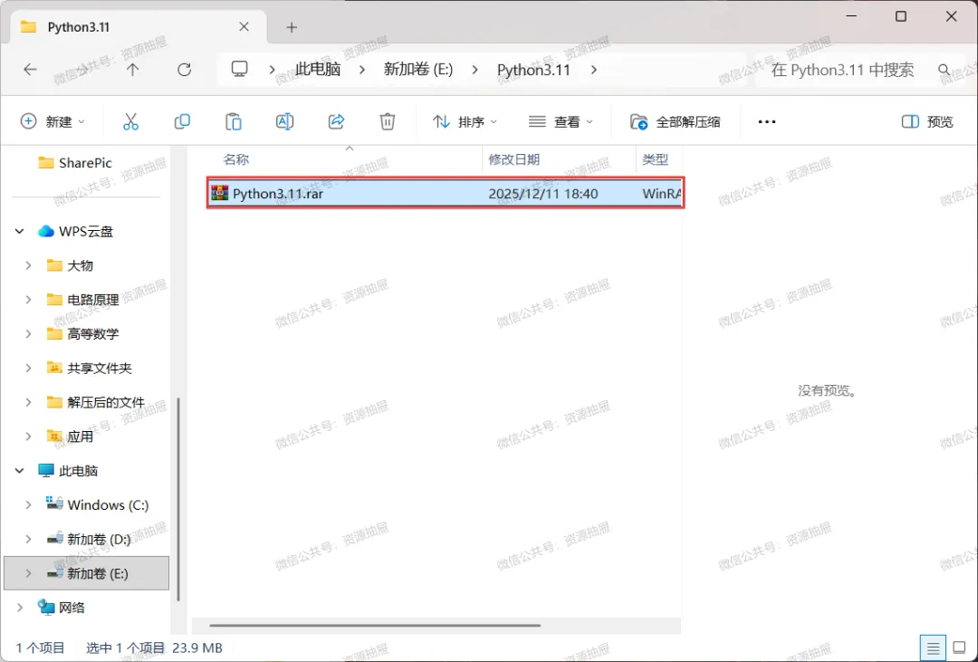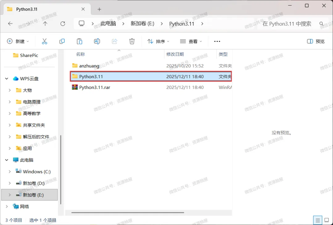 4.解压好后,打开解压得到的[Python3.11]文件夹