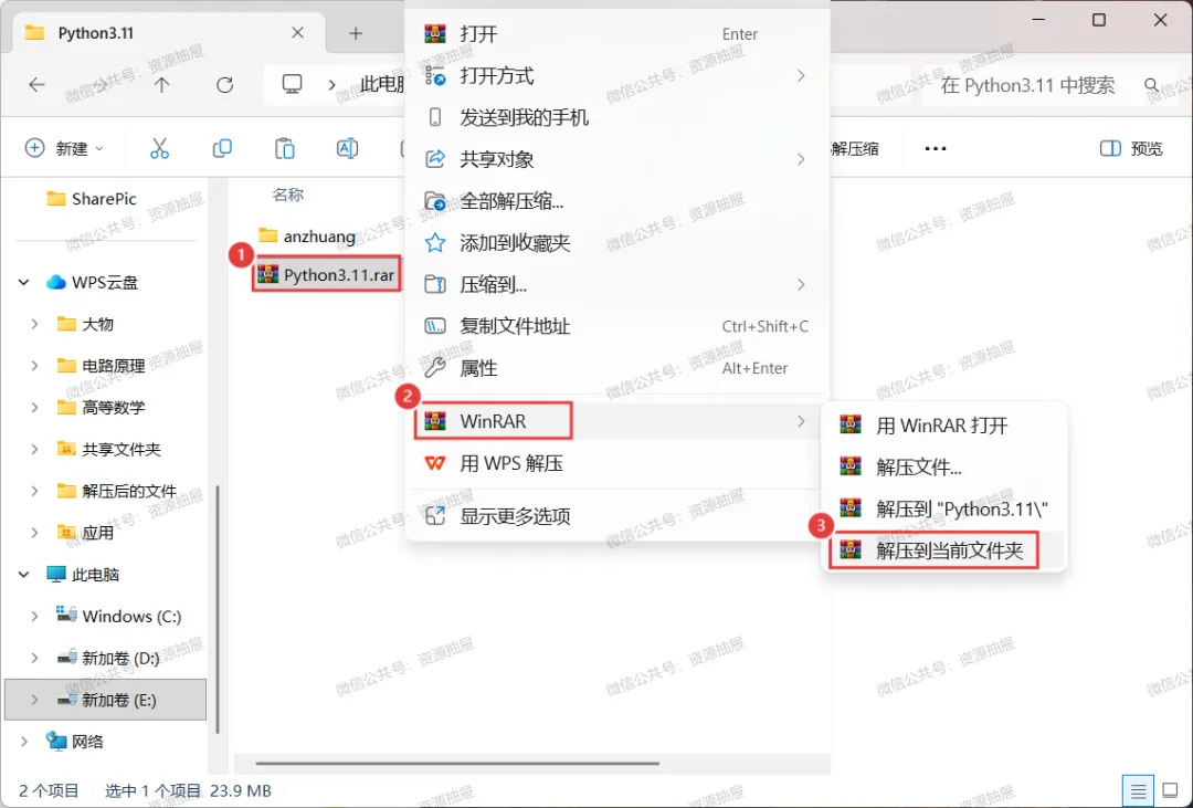3.将压缩包[Python3.11.rar]解压到当前文件夹