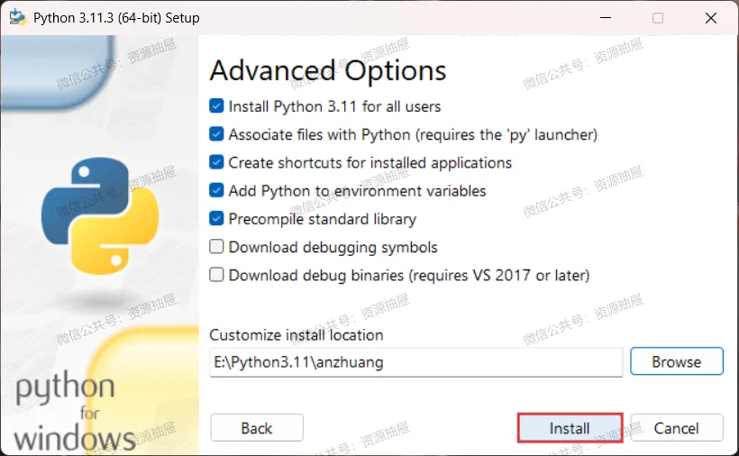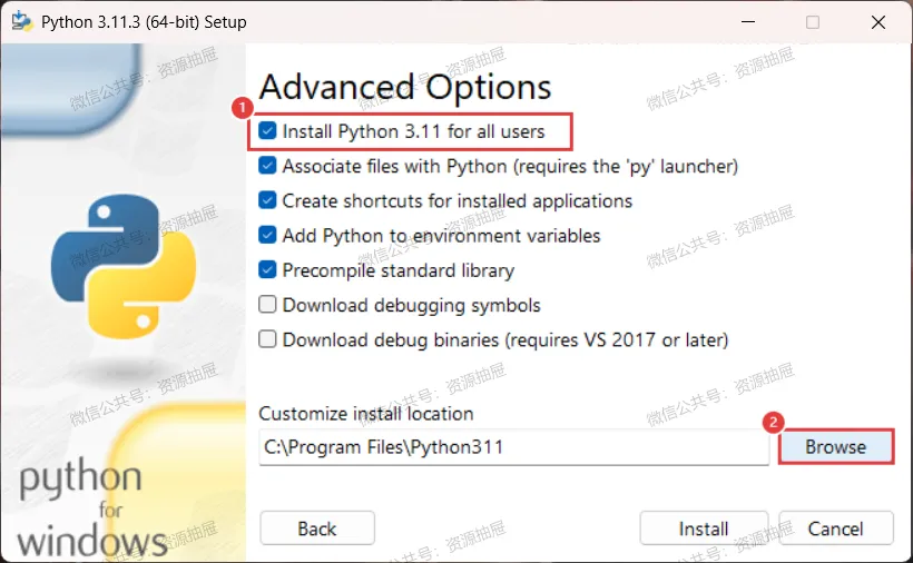 8.勾选[Install Python 3.11 for all users],点击[Browse]
