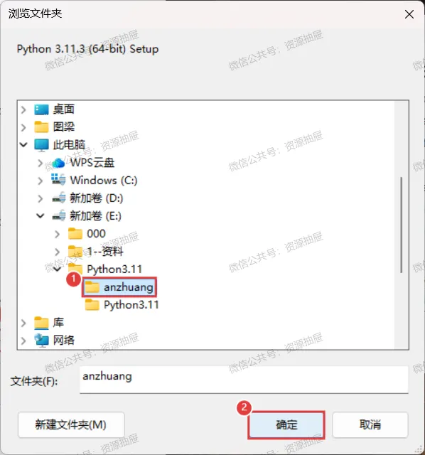 9.找到并选择之前建立的[anzhuang]文件夹,点击[确定]