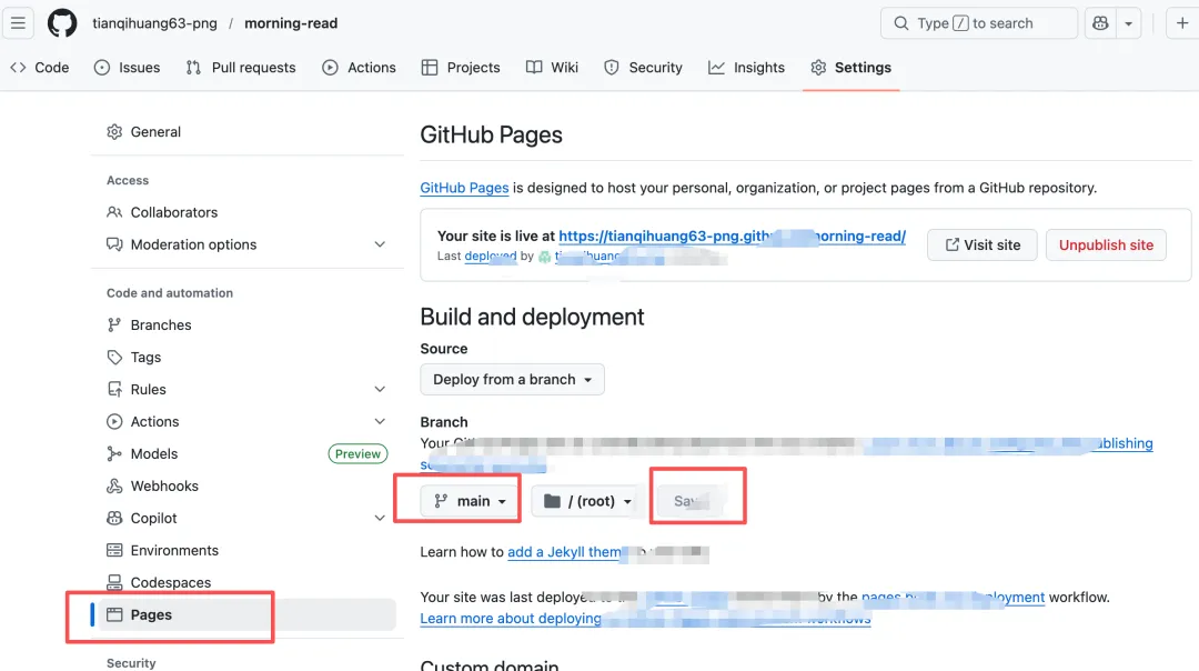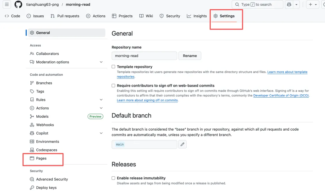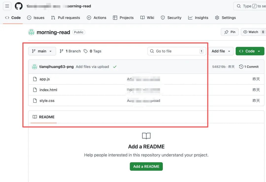 这一步是至关重要的一步,到如今 AI 强大到能帮我们做出产品,但部署和上线发布成别人可以用的,这步操作很多小伙伴不太会。会完成全栈应用的开发与部署。这也是一次个体从“写代码”到“构建系统”的思维跃迁。个人推荐轻量产品部署的方式,目前我推荐的是2 种:此处如果有不会的地方,也可以直接像 claude code 提问,它会推荐几种方法。还需要准备一个谷歌账号,登录对应的发布网站。我们以github 为例,登录上来后,点击 new然后我们把桌面文件夹里面的文件上传上来,上传成果后就是我这张图片展示的这个样子。我们点击 pages,选择 main 和 save,进行提交,等待1 分钟左右,刷新一下,就会得到一个网址。可以复制下来发给别人,或者直接点击,就会跳转到打开的页面。到这一步就完成了一个人整个从产品的需求调研到发布的全流程。https://tianqihuang63-png.github.io/morning-read/看到这里,是不是觉得借助 AI 编程做产品并没有那么难呢大家可以实操感受起来