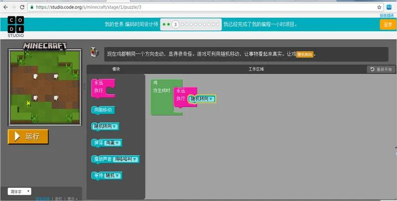 《我的世界》编程游戏简易版在之前的“编程一小时”也作了亮相。自 2014 年起至 2016 全球计算机科学教育周,微软已经把“编程一小时”活动带到全国 4200 多所大中小学校,并且成功地迷住了 35 万学生。这款第一人称游戏通关很简单,只需网页端按照一定方式的拖拽可视化指令块:它旨在在界面中介绍学习编程,通过互动的方式让孩子们最终了解到编程的逻辑和概念。与其他游戏不同的是,这款游戏没有任何固定路线,模块摆放方式并不唯一;这样的自由灵活可以让学生们发挥无限的思路,在最终看到拖拽生成的代码之后可以有对程序、对机器运行的机制感知。