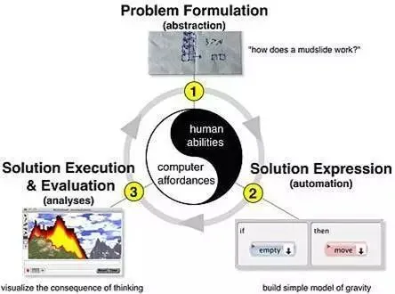 在处理问题和寻求方案的时候,以类似于电脑的计算工作方式,高效地执行。计算思维的过程可以大致抽象为三个步骤: