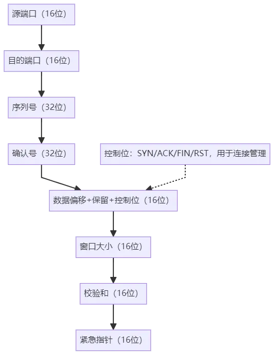传输层:依据RFC 793标准添加TCP头,固定首部20字节(可选字段最多扩展40字节),包含源端口、目的端口(16位,标识应用进程)、序列号(32位,保障数据有序传输)、确认号(32位,确认已接收数据)、窗口大小(16位,实现流量控制)等核心字段,形成TCP数据包。若采用UDP协议,则添加RFC 768定义的UDP头(仅8字节,含源端口、目的端口、长度、校验和),无可靠性保障但传输效率更高。TCP头格式如下: