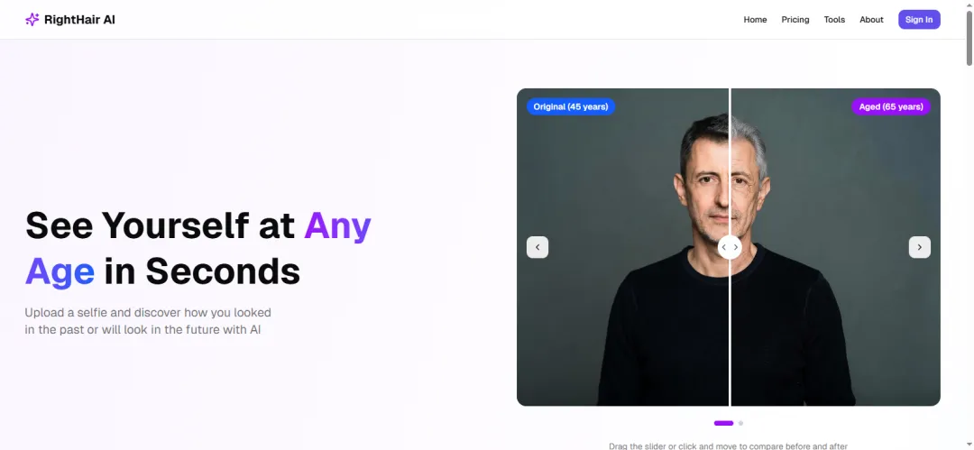 这是复刻的国外一个网站的核心功能,可以上传一张图片,生成不同年龄段的效果。同时阿杰接入了谷歌登录和支付的功能!
