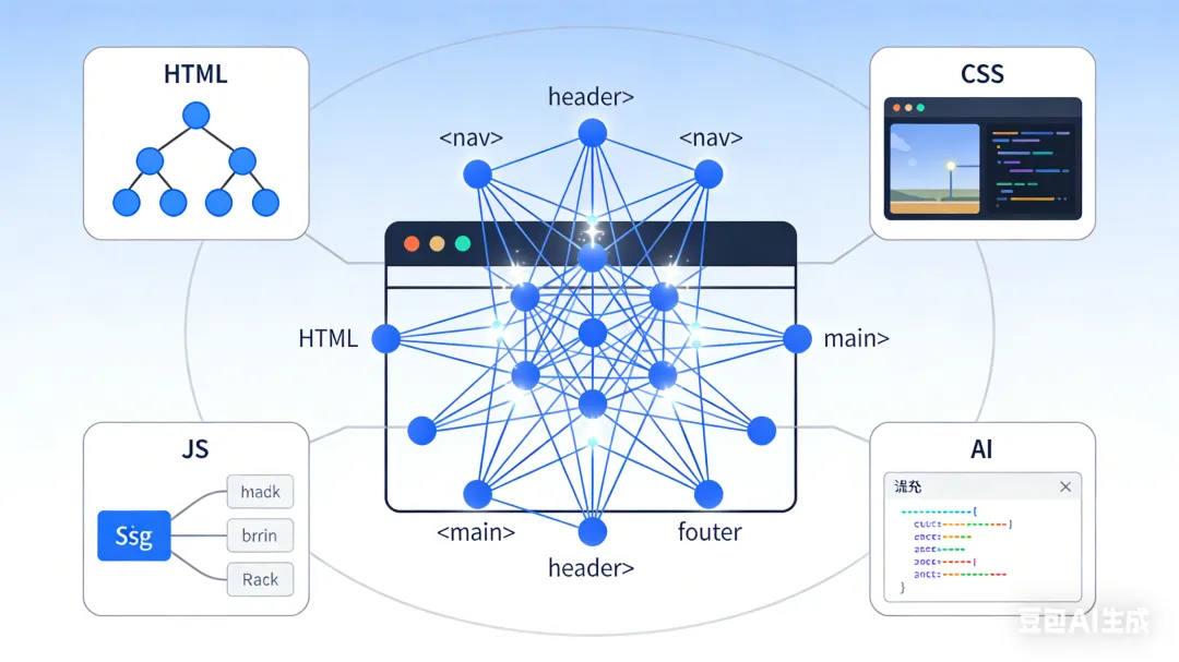 知识与技能:了解HTML的基本概念与作用;认识常见HTML标签(如, , ,)及其功能;能使用生成式人工智能工具辅助生成、解释简单HTML代码;能使用浏览器开发者工具初步查看网页源代码。过程与方法:经历“观察网页-抽象元素-询问AI-理解代码-实践验证-优化创新”的完整探究过程,体验人机协同解决问题的基本方法。情感态度与价值观:激发探索网络世界底层逻辑的兴趣;树立技术工具应为创意表达服务的观念;培养对智能生成内容不盲从、敢质疑、会验证的科学态度。四、教学重难点