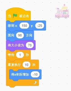 (2)点击绿旗,等待 1 秒后,汽车从右到左开到舞台中间;