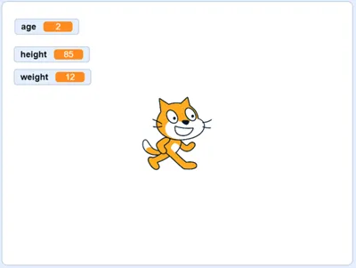 默认小猫角色和白色背景,给定一个儿童的年龄(age),依据标准身高(height)和体重(weight)的计算公式了解该儿童是否符合标准。