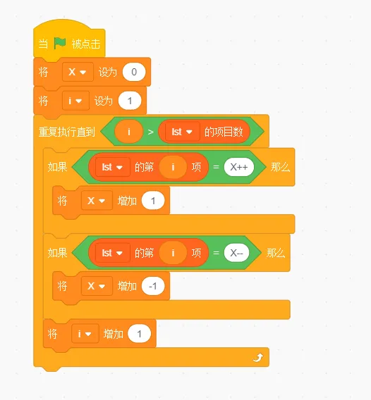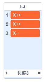 新建列表“lst”,存储变量“X”执行的操作,例如 lst = [“X++”,”X++”,”X--”]