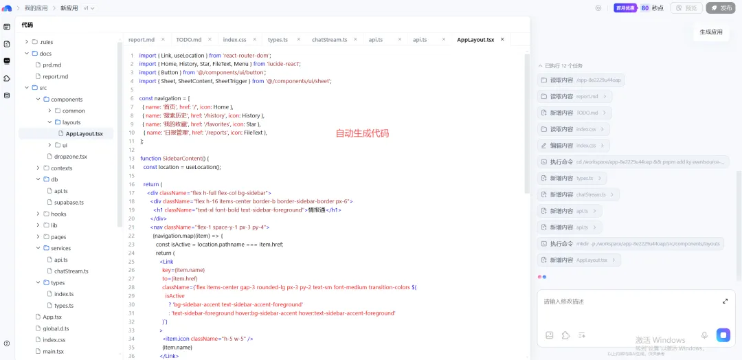 它的核心逻辑非常暴力:不需要你写一行代码,不需要你懂复杂的逻辑,只要你会说话,就能生成一个功能完整的应用。