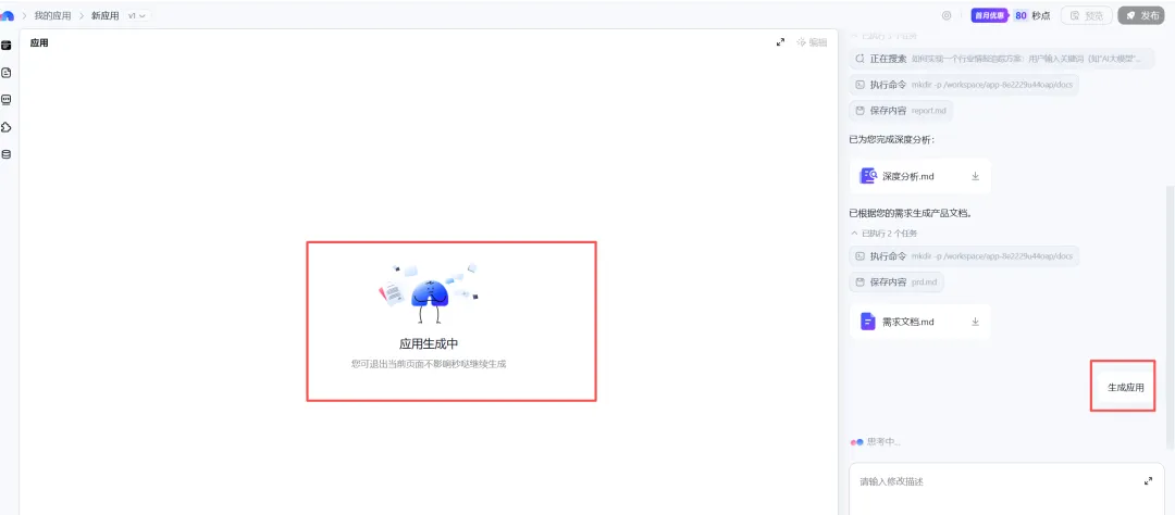 能力调用: 系统显示“应用生成中”