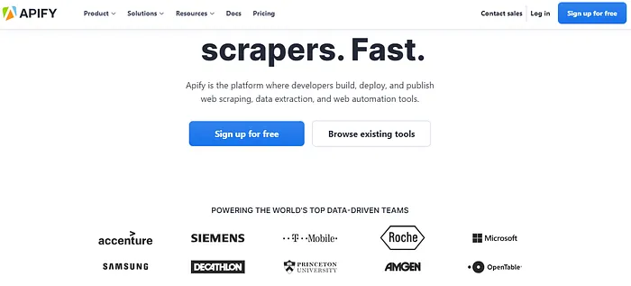 Apify 是网页爬取行业里非常知名的工具之一。它为各类热门网站提供了上千个现成模板,包括电商和社交媒体平台。模板覆盖了从公开 Instagram 个人主页、推文到 TikTok 视频等多种数据源。