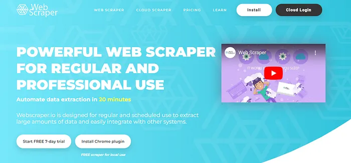 Web Scraper 是一个免费的浏览器扩展,适合做本地化(本地浏览器内)网页爬取。若有更大规模需求,它也提供功能更丰富的付费订阅。你可以按需要设置定时爬取,让任务在指定时间段自动运行,控制力相当不错。