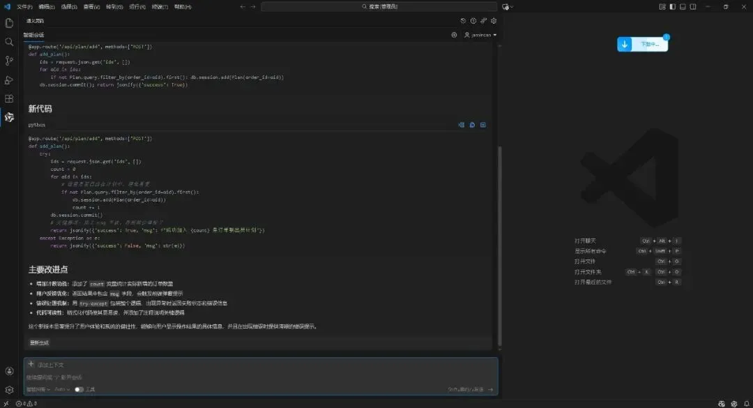 我想:既然我能搞定Excel,为什么不直接学编程,做一个真正的软件呢? 于是,我下载了那个看起来很专业的 VS Code,还装上了AI编程助手。 我以为有了AI,我动动嘴皮子就能写出代码。