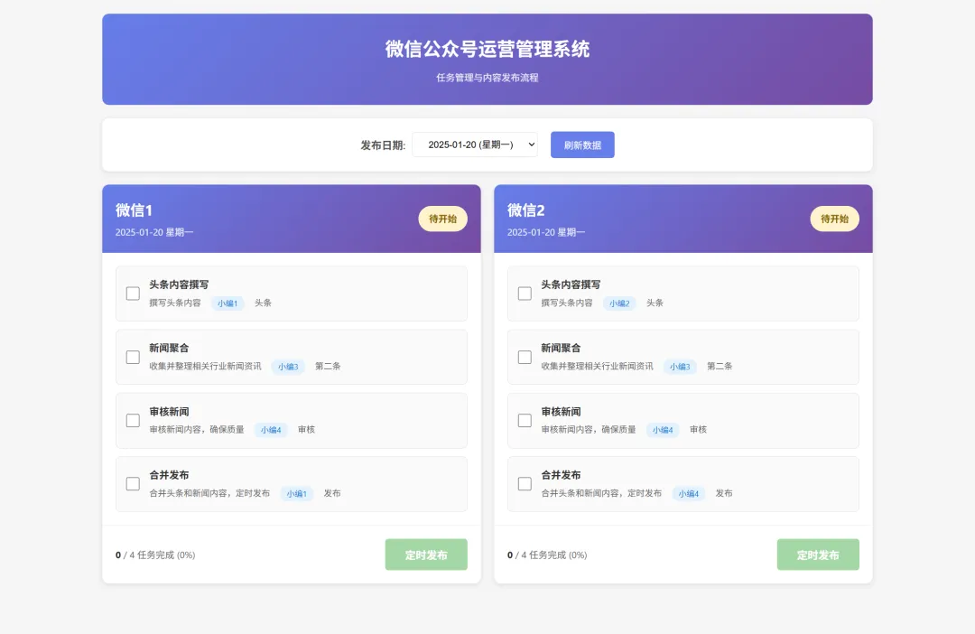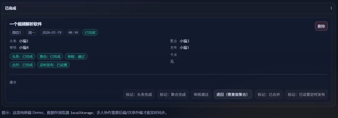 每个小编处理完成后,果核就能一眼看每个号的状态。