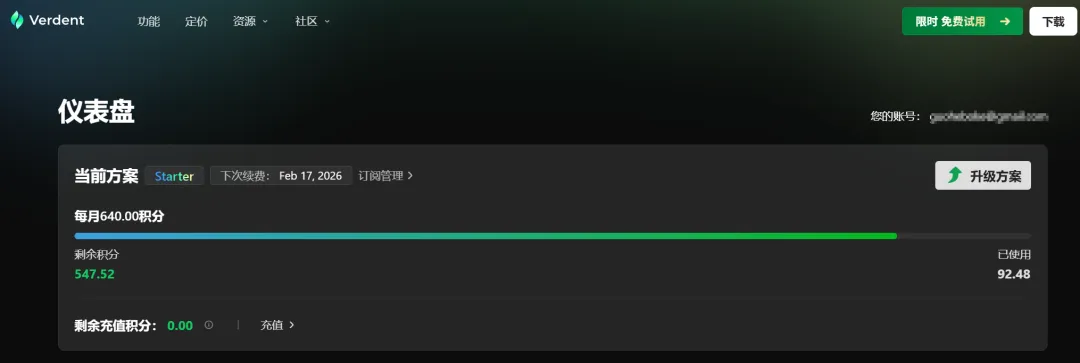而这19美元的版本,根本就不够用,一天就干了一百积分,果核估计一周就能用完。