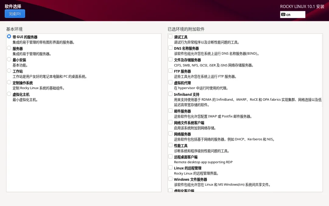 可以选择安装源以及要安装的其他软件包(应用程序) | |