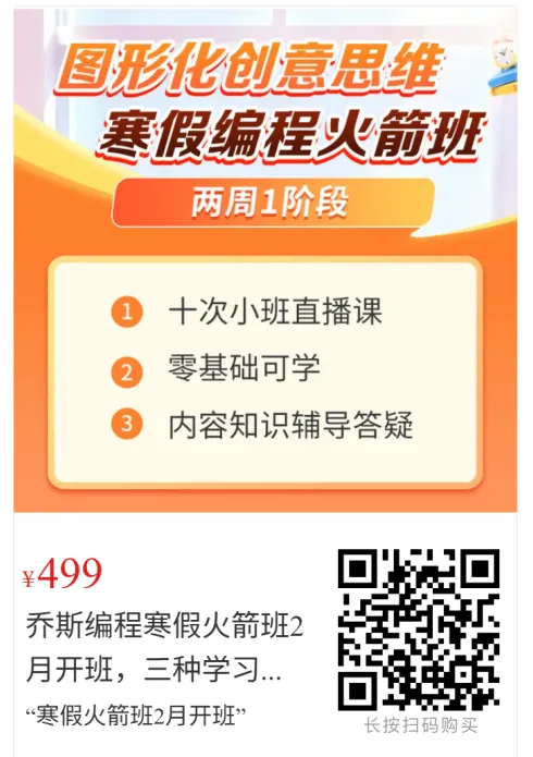 乔斯编程寒假火箭班2月开班,三种学习语言,10次直播课 (限新用户买一单)