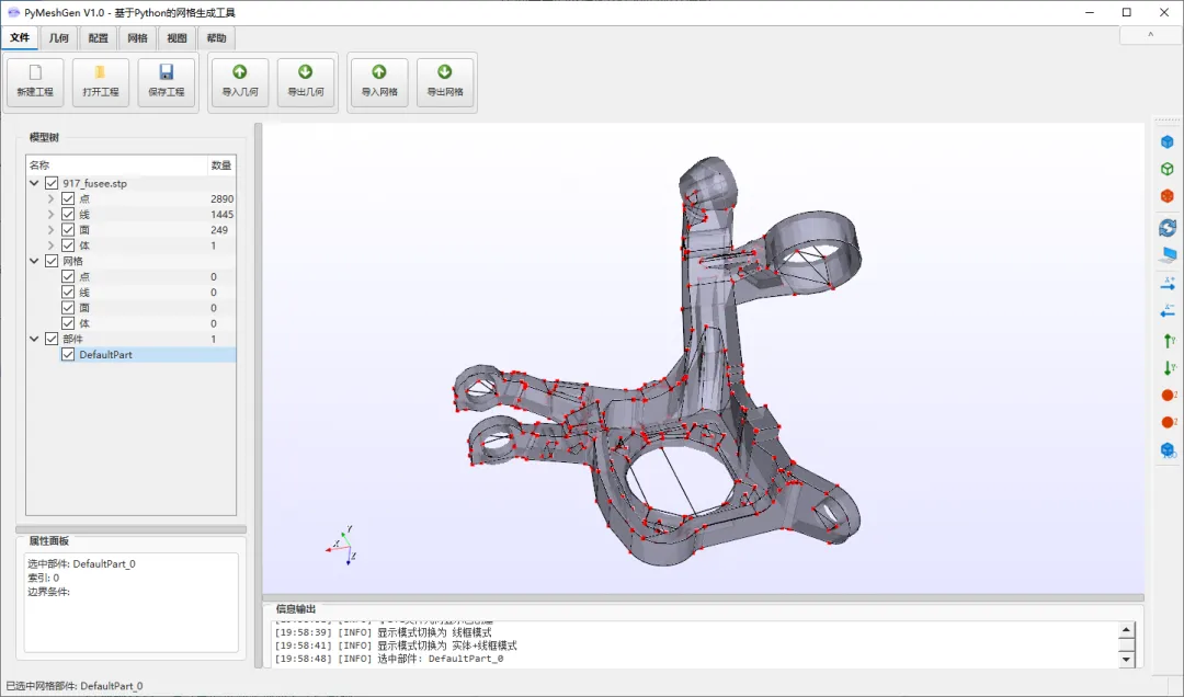 模型树根节点├── 几何 (Geometry)│ ├── 点 (Vertices)│ ├── 线 (Edges)│ ├── 面 (Faces)│ └── 体 (Bodies)├── 网格 (Mesh)│ ├── 点 (Vertices)│ ├── 线 (Edges)│ ├── 面 (Faces)│ └── 体 (Bodies)└── 部件 (Parts) ├── 部件1 ├── 部件2 └── ...这种设计的优势: