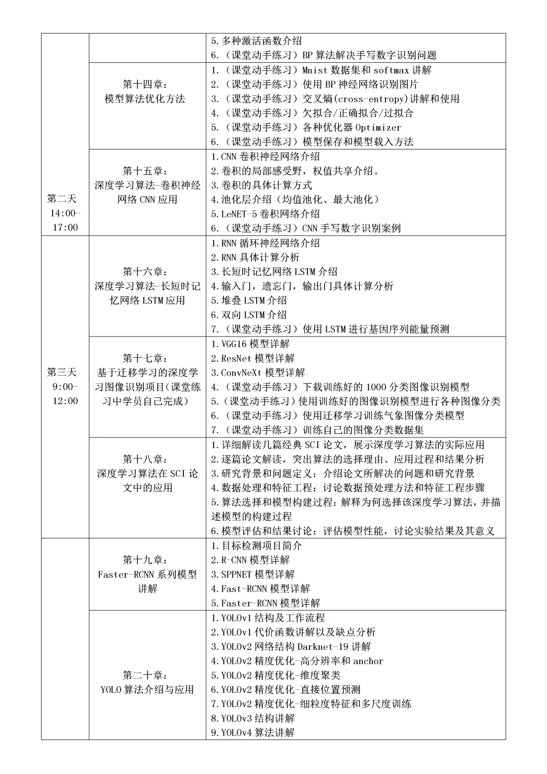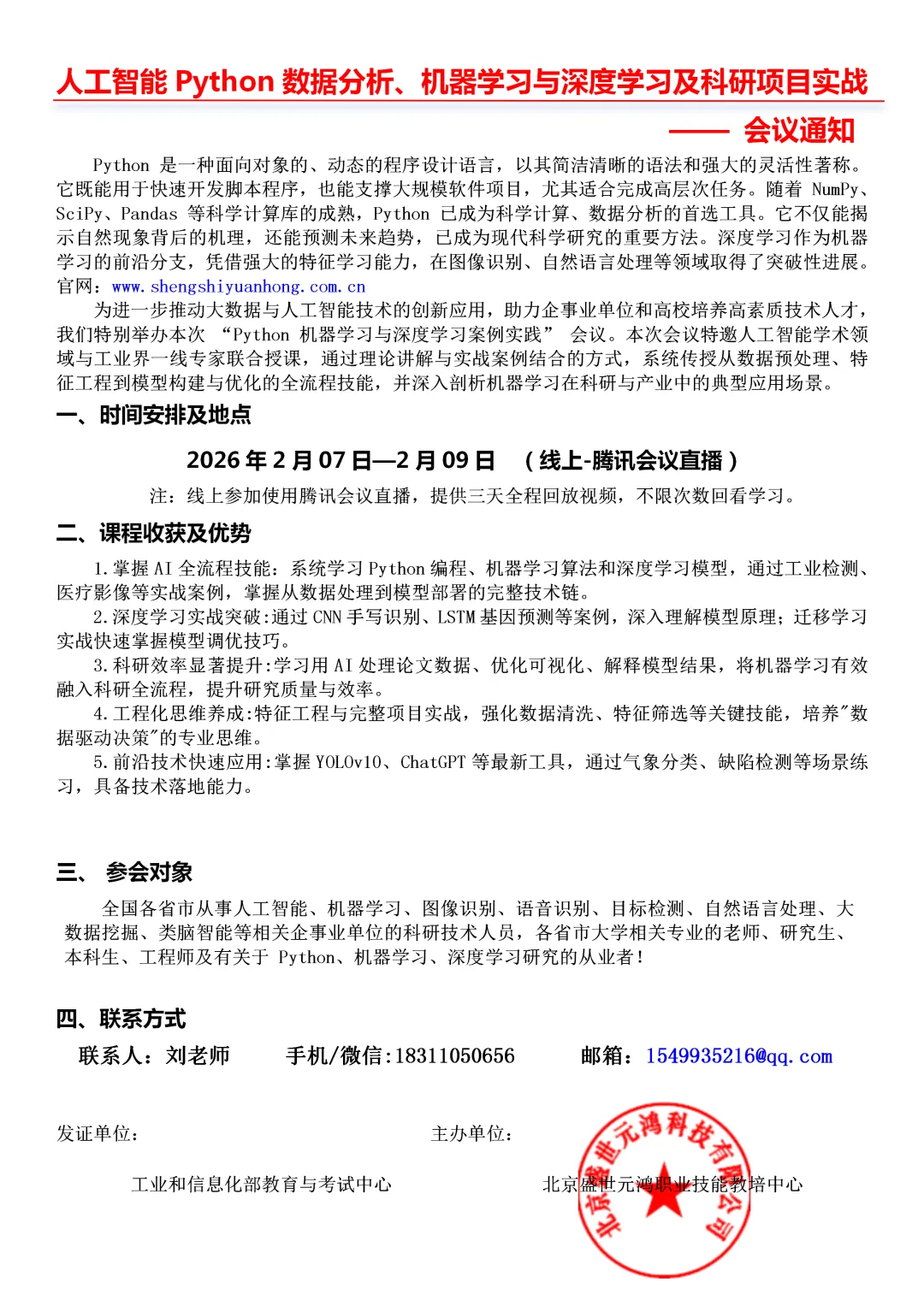 全国各省市从事人工智能、机器学习、图像识别、语音识别、目标检测、自然语言处理、大数据挖掘、类脑智能等相关企事业单位的科研技术人员,各省市大学相关专业的老师、研究生、本科生、工程师及有关于Python、机器学习、深度学习研究的从业者!A类:统一收费3980元(会议费、资料费、指导费、证书认证费、发票费)由中职人才评测中心颁发:AIGC人工智能应用工程师”高级证书B类:统一收费5580元 (会议费、资料费、指导费、工信部认证费、发票费) 由工业和信息化部教育与考试中心颁发:“人工智能应用工程师”高级证书C类:统一收费6380元 (会议费、资料费、指导费、工信部认证费、发票费) 由工业和信息化部人才交流中心颁发:“Python软件开发工程师”高级证书 5、 五人以上报名可免费赠送一个名额(第6人免费)核心竞争力,从来不是 “懂理论”,而是 “能落地”。这门课拒绝纸上谈兵,用 3 天时间帮你打通 “算法 - 网络 - 论文 - 大模型” 的完整链路,从 “数据新手” 变身 “能实战、会科研、懂前沿” 的复合型人才!