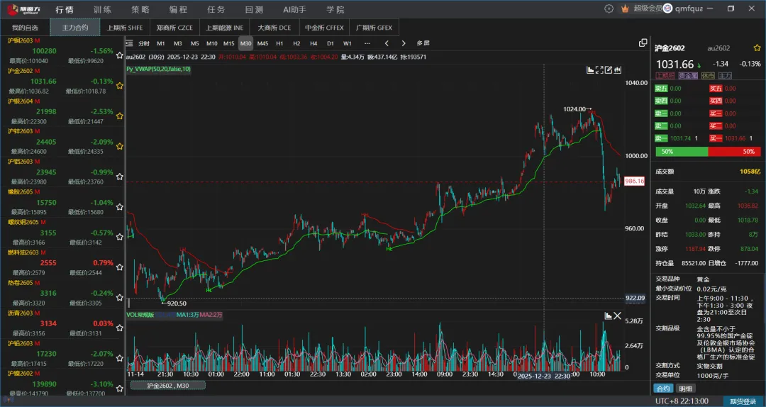 VWAP指标基于期魔方Python实现,仅做学习研究之用,有喜欢的朋友,咨询客服免费下载!