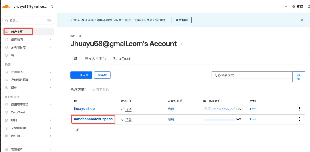 选择自己的域名,网址 https://www.cloudflare.com/