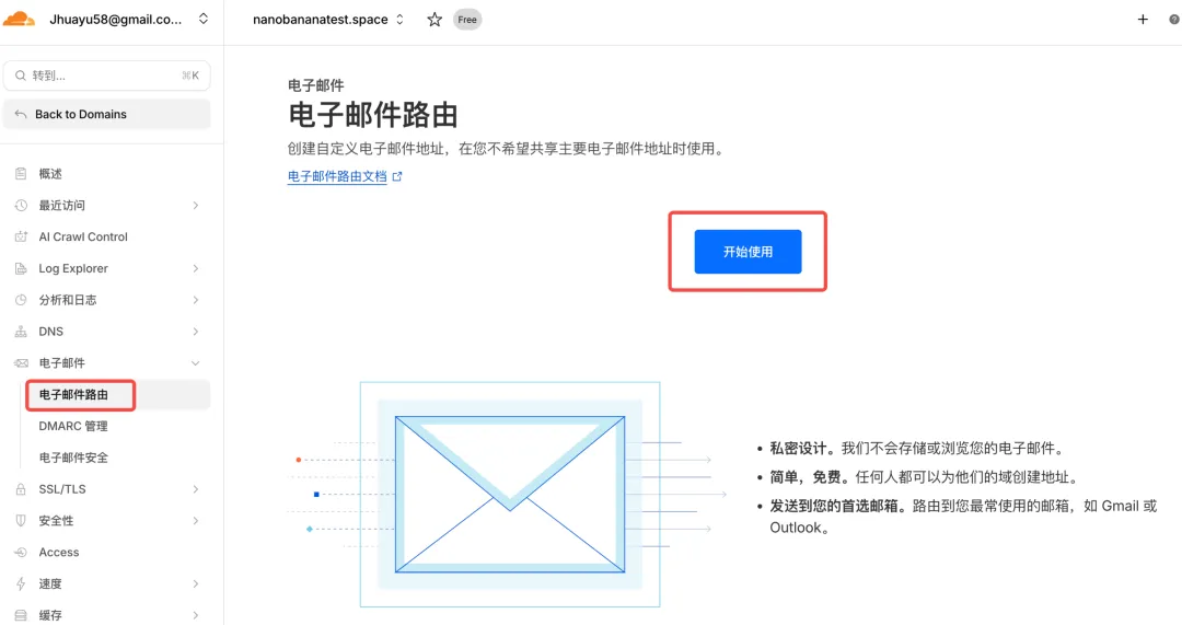 选择电子邮件路由,点击开始