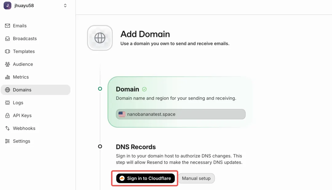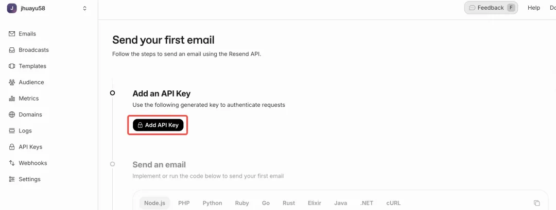 网址 https://resend.com/,右上角使用谷歌登录
