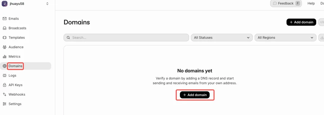 点击域名,点击增加Add domain