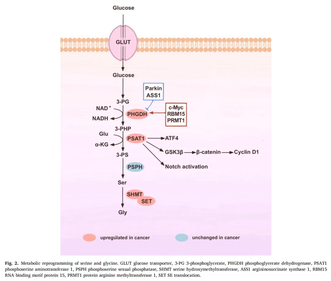 核心作用:丝氨酸和甘氨酸参与核苷酸合成、甲基供体代谢和氧化还原平衡,对维持癌细胞快速增殖至关重要。