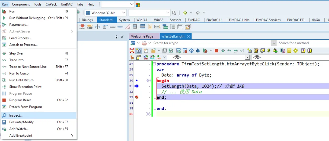 RAD Studio 支持四种断点类型:
