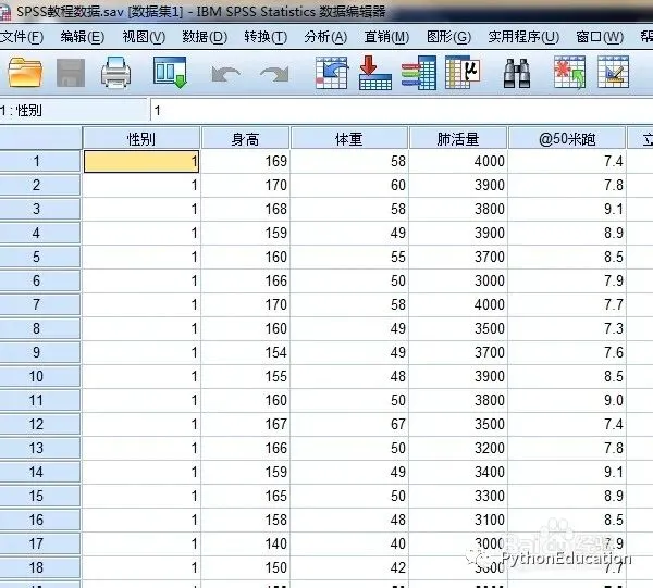 首先把要分析的数据导入到SPSS软件中,如图所示: