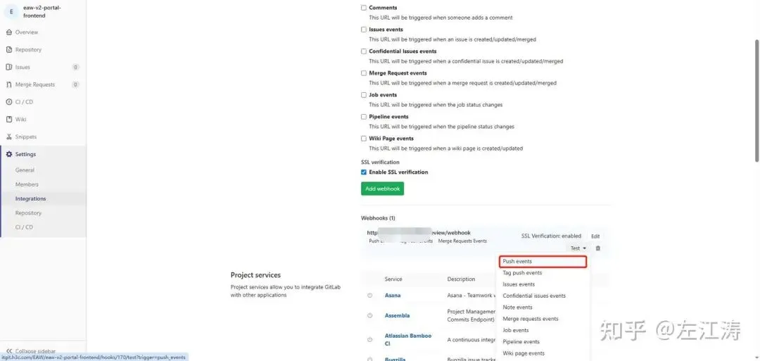 在配置好webhook后可以点击测试按钮 Test看下网络是否畅通。
