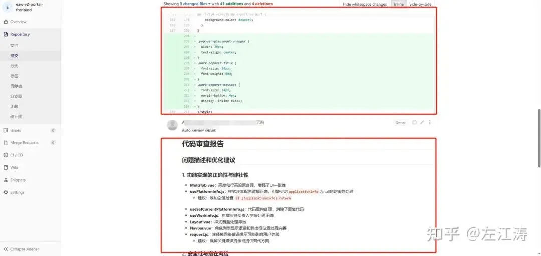 代码push后会在提交note下增加审查报告。