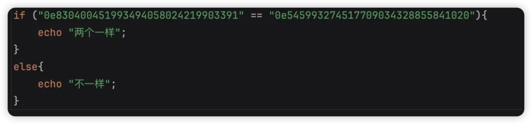 这里就想到了一个办法,可以尝试进行php经常在CTF题目中喜欢考的PHP弱比较,这里查阅资料可以知道,MD5当中弱比较如果两个M5是0e开头的那么比较结果为true。