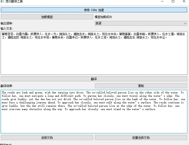 然后就是测试了,请忽略界面的美感,先来个中译英: