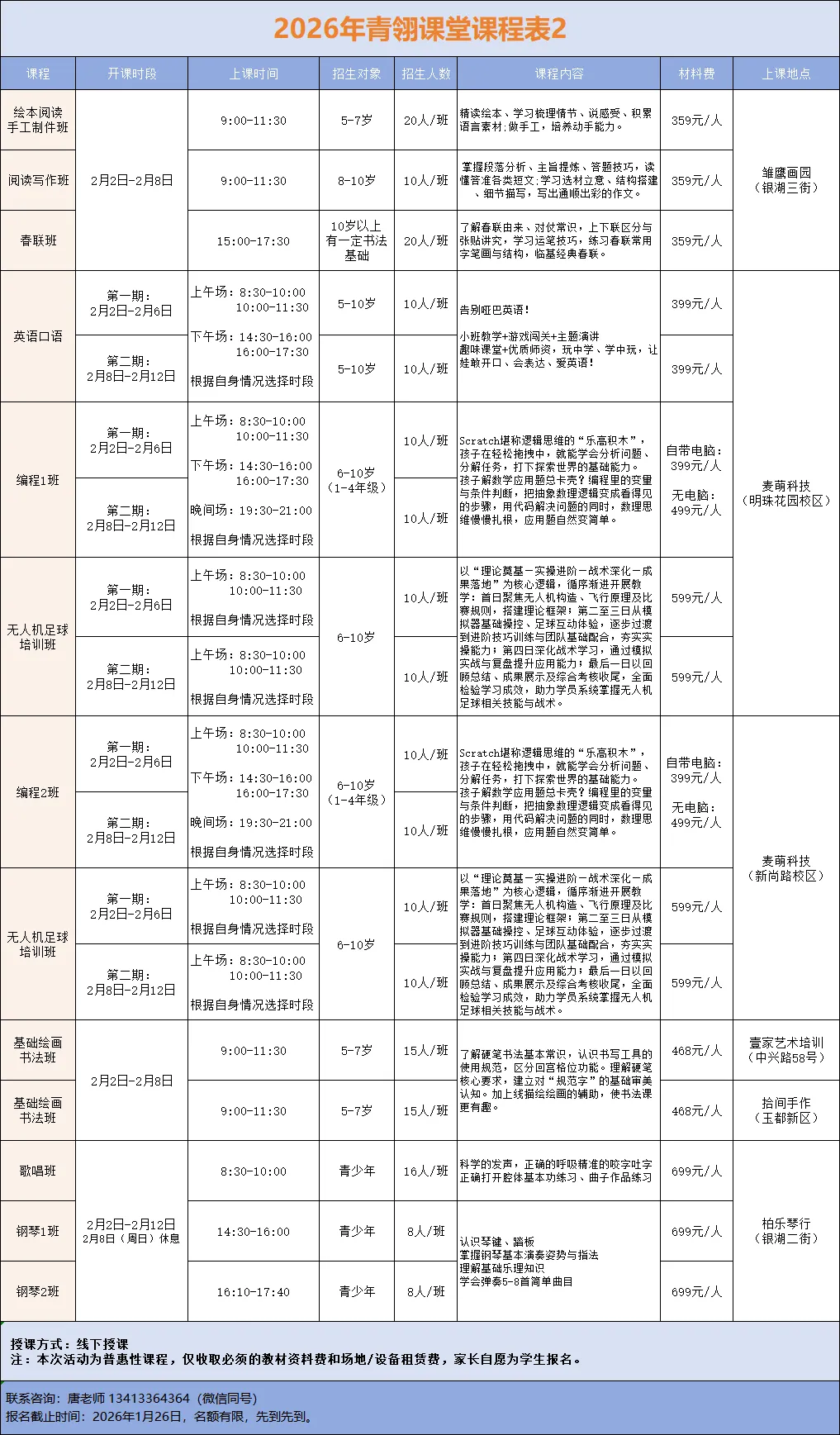· 报名截止时间:2026年1月26日,名额有限,先到先到。