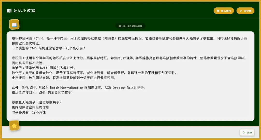 为了让自己更高效地记忆内容,我在AI的帮助下设计并开发了这款桌面小工具——它模拟教室里的黑板,用简单、直观的三步流程,把枯燥的背诵变成一场轻松的互动练习。