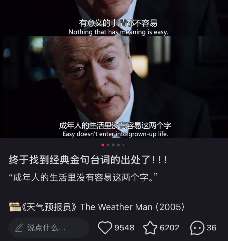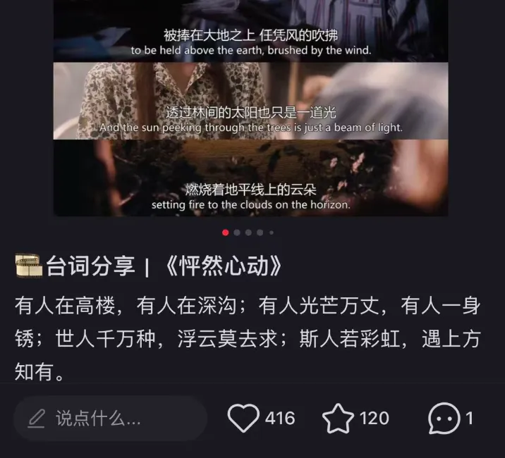 数据敏感的我随后逛了下小红书,发现还真有不少做台词分享的博主,数据还挺好的。