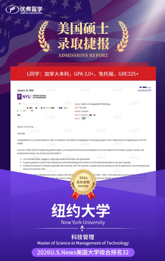 💐获得纽约大学硕士录取offer💐