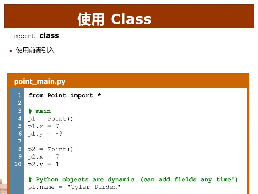 要使用类,首先需要导入定义类的模块,然后创建类的实例。创建实例使用类名后跟括号,就像调用函数一样。创建实例后,我们可以访问和修改其属性。Python对象是动态的,这意味着我们可以在任何时候给对象添加新属性。这种灵活性在某些场景下很有用,但也可能导致难以调试的错误。良好的类设计应该明确对象的属性,而不是依赖动态添加。