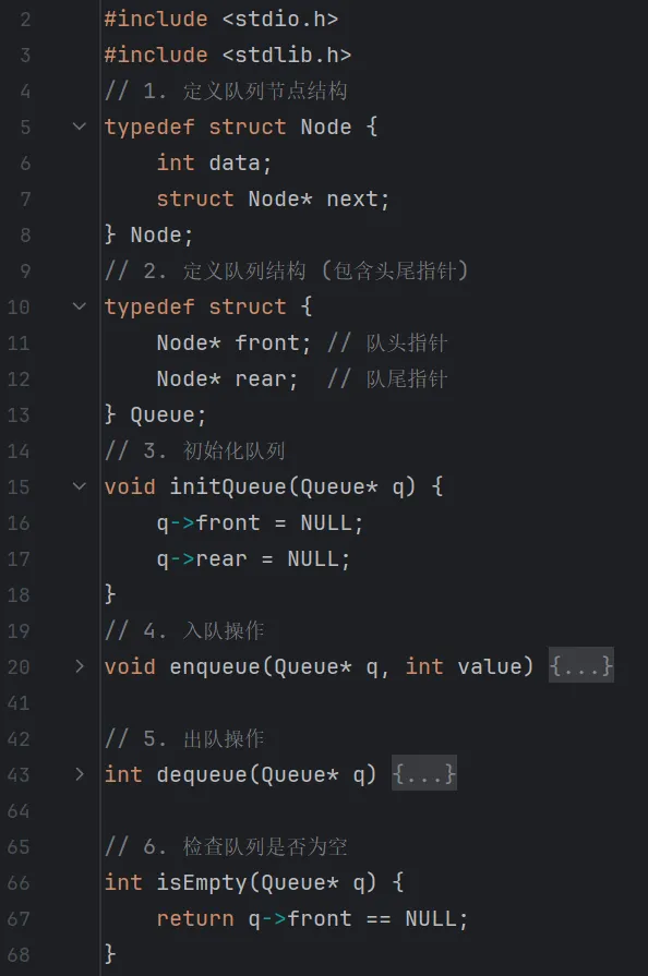 这里我为你实现一个链式队列,包含初始化、入队和出队的核心逻辑: