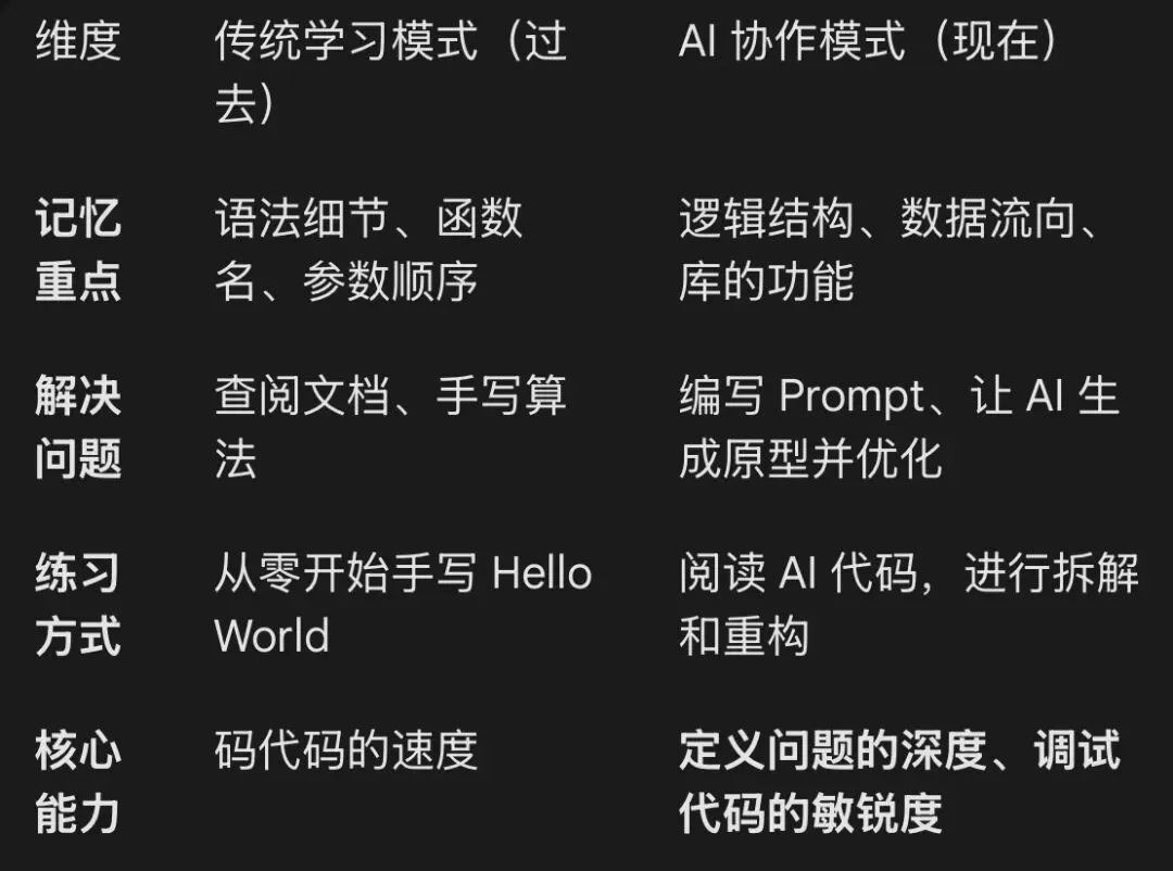 在 AI 时代,我们不应该再像从前那样“苦学”编程。学习路径已经发生了根本性变化: