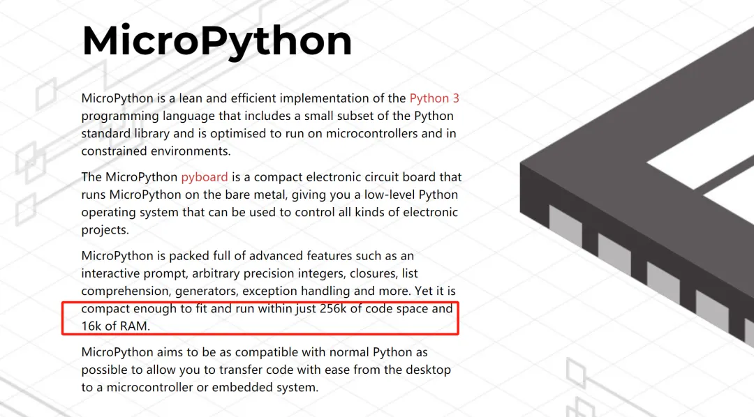 MicroPython 是Python3编程语言的一个完整软件实现,用C语言编写,被优化于运行在微控制器之上。