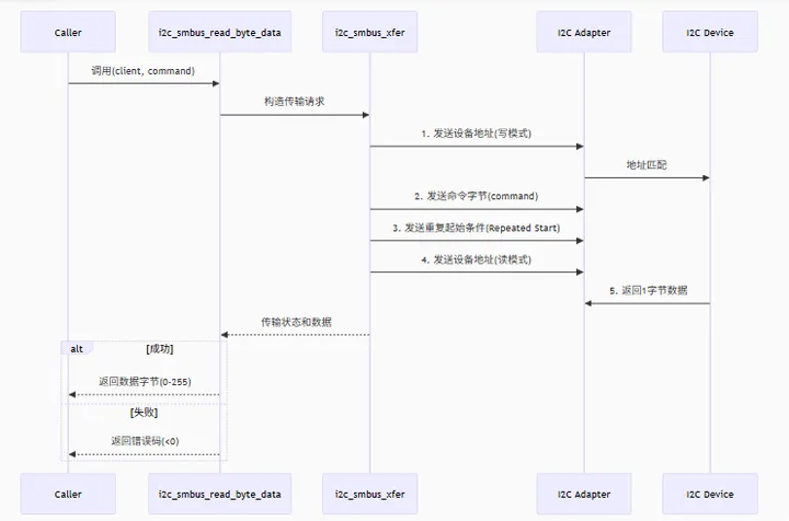// 单次读写inti2c_master_send(struct i2c_client *client, constchar *buf, int count);inti2c_master_recv(struct i2c_client *client, char *buf, int count);// SMBus封装(推荐)s32 i2c_smbus_read_byte_data(struct i2c_client *client, u8 reg);s32 i2c_smbus_write_byte_data(struct i2c_client *client, u8 reg, u8 value);s32 i2c_smbus_read_word_data(struct i2c_client *client, u8 reg);
