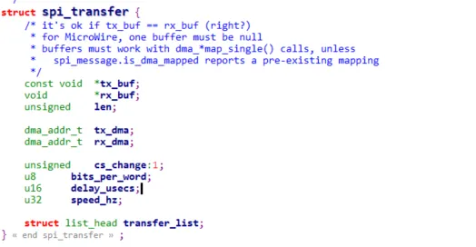 DMA支持:大块数据可能通过DMA传输(如SPI的dma_map_single())